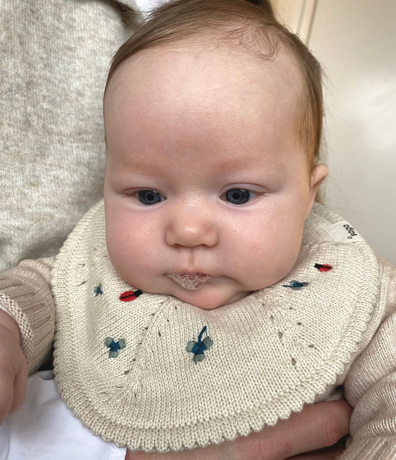 Ce bavoir bébé en tricot de Saga Copenhagen est idéal à utiliser particulièrement lorsque bébé sort ses dents !
